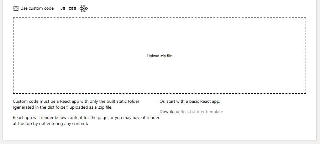 Article pages will still render the shell they would without custom code, and the custom code is rendered as a React app in the main section part of the page. The custom React app will render below any descriptions, features, or content you have for the page. If you prefer for the React app to render at the top and control the content information, remove any descriptions, features, or content from the user admin.